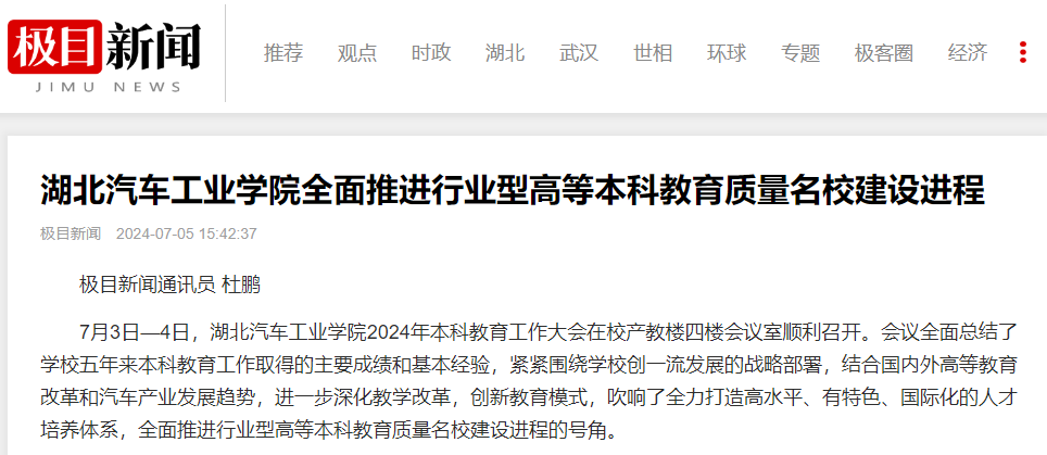 【极目新闻】湖北汽车工业学院全面推进行业型高等本科教育质量名校建设进程