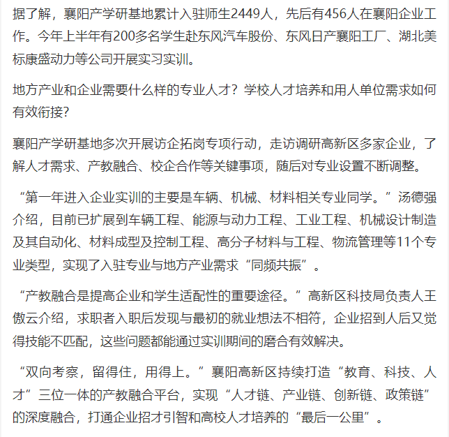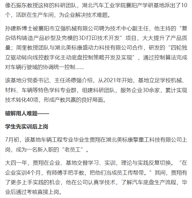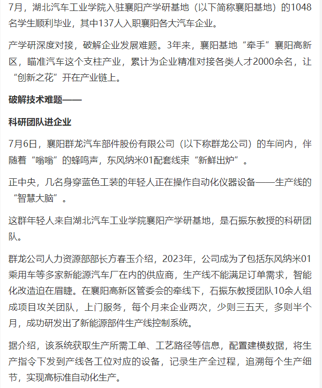 【荆楚网】襄阳产学研基地瞄准汽车产业 让技术服务于企业 让学生活跃在车间