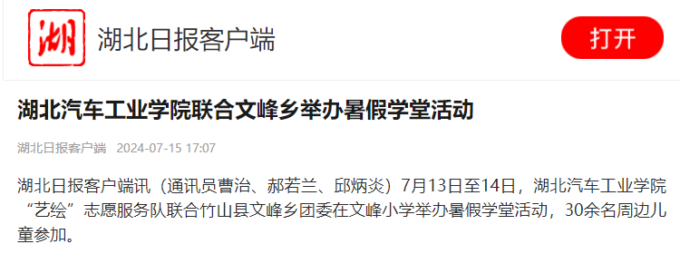 【湖北日报】湖北汽车工业学院联合文峰乡举办暑假学堂活动