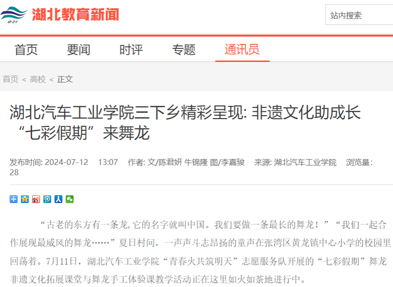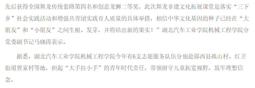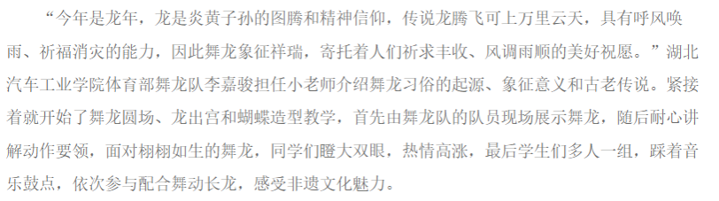【湖北教育新闻】湖北汽车工业学院三下乡精彩呈现: 非遗文化助成长 “七彩假期”来舞龙