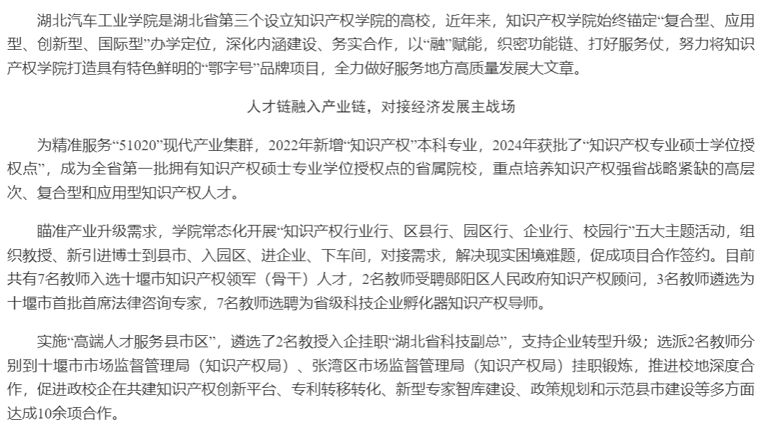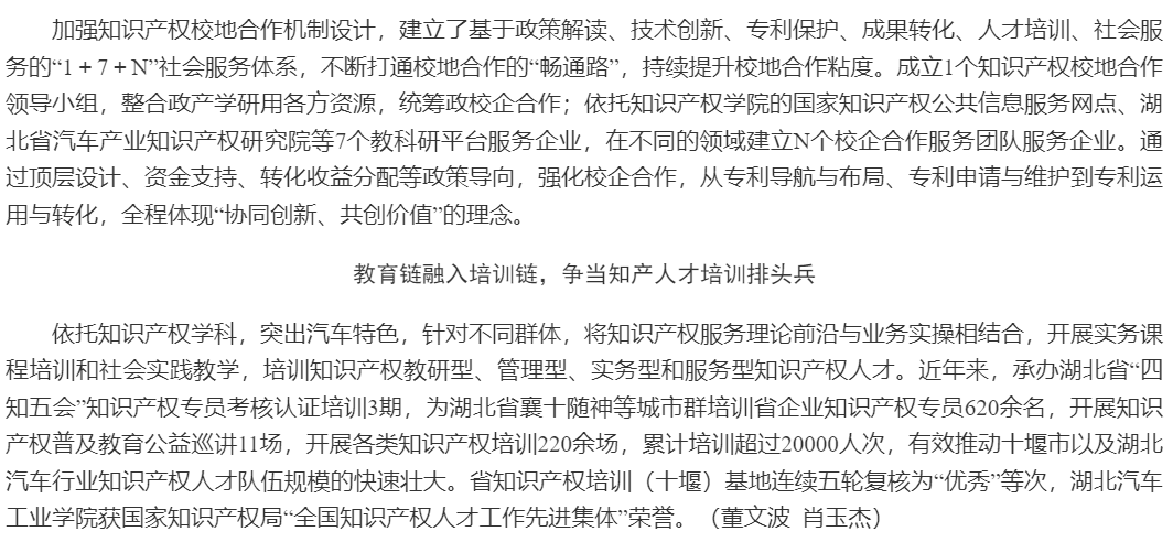 【湖北省知识产权局】湖北汽车工业学院创新知识产权服务地方发展