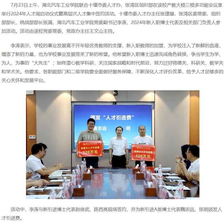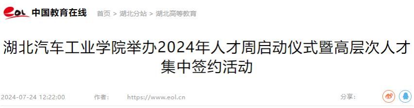 【中国教育在线】湖北汽车工业学院举办2024年人才周启动仪式暨高层次人才集中签约活动