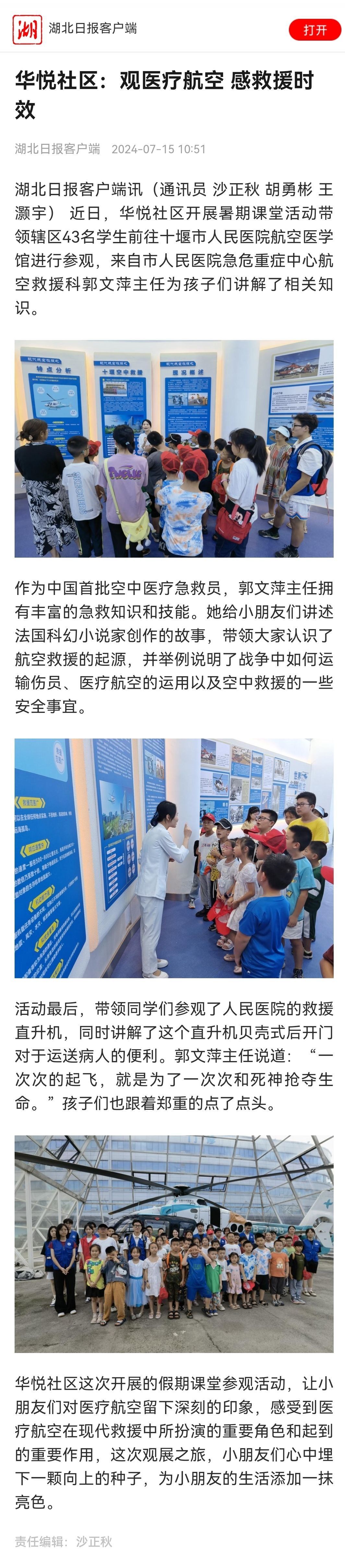【湖北日报】华悦社区:观医疗航空 感救援时效