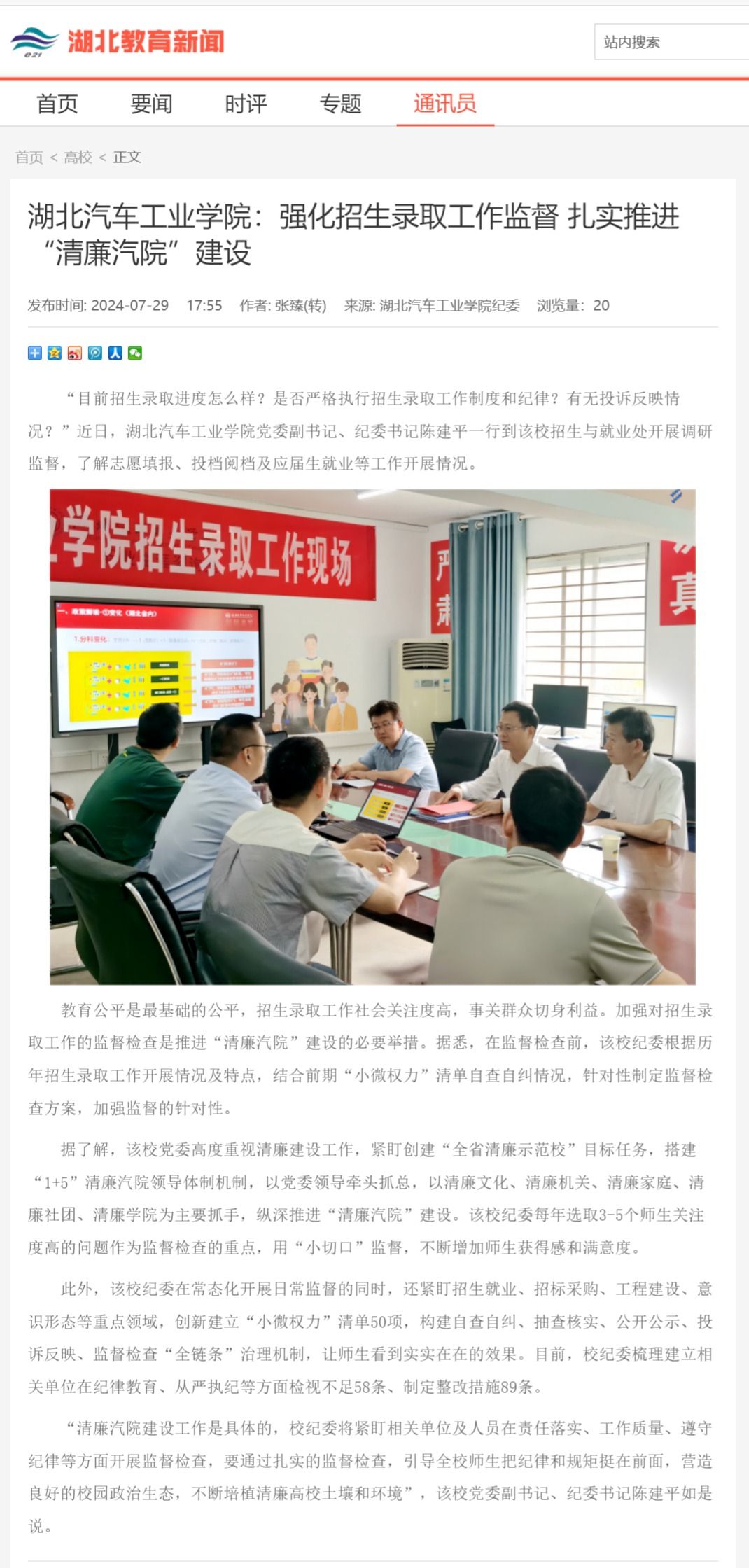 【湖北教育新闻】湖北汽车工业学院:强化招生录取工作监督 扎实推进“清廉汽院”建设