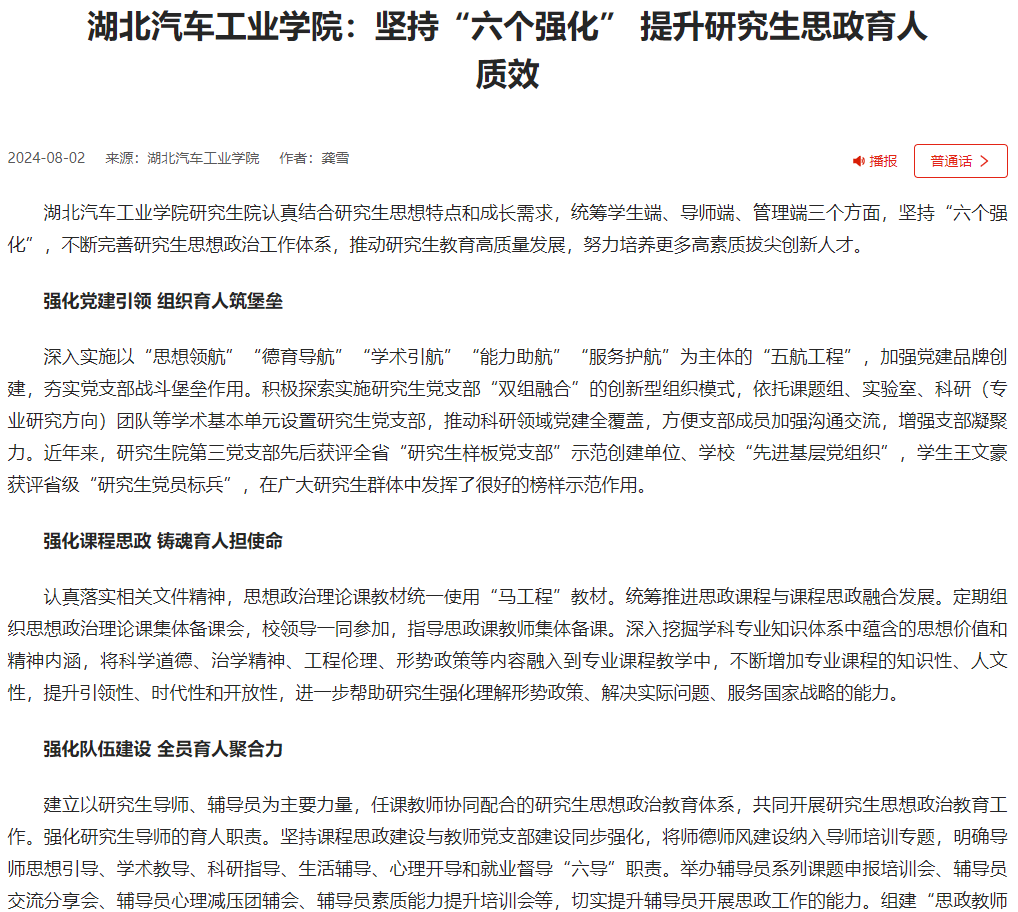 【学习强国总平台】湖北汽车工业学院:坚持“六个强化” 提升研究生思政育人质效