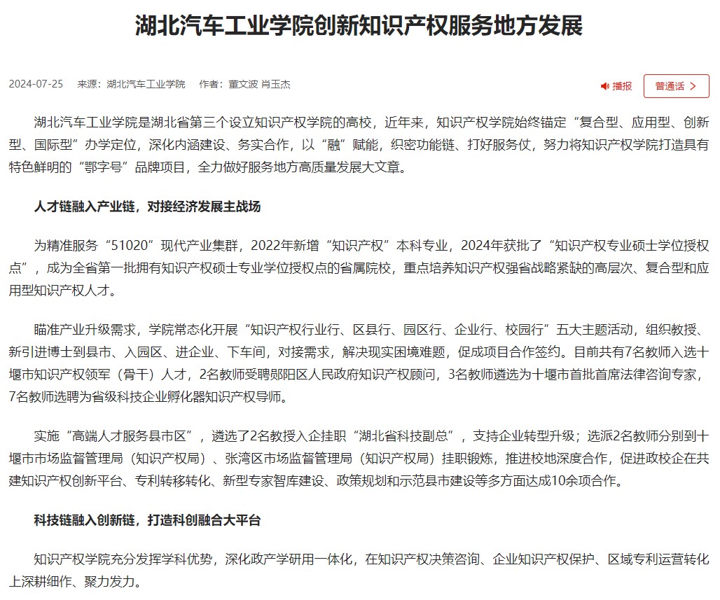 【学习强国总平台】湖北汽车工业学院创新知识产权服务地方发展