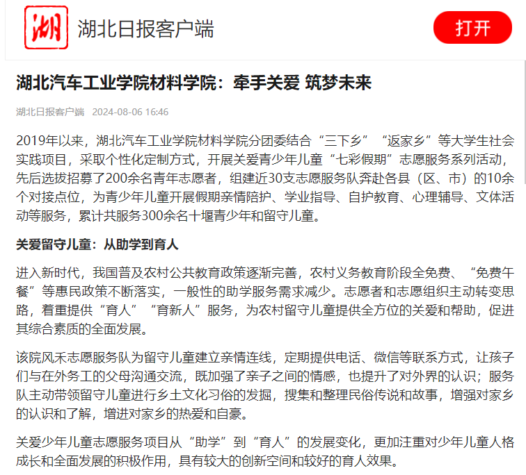 【湖北日报】湖北汽车工业学院材料学院:牵手关爱 筑梦未来