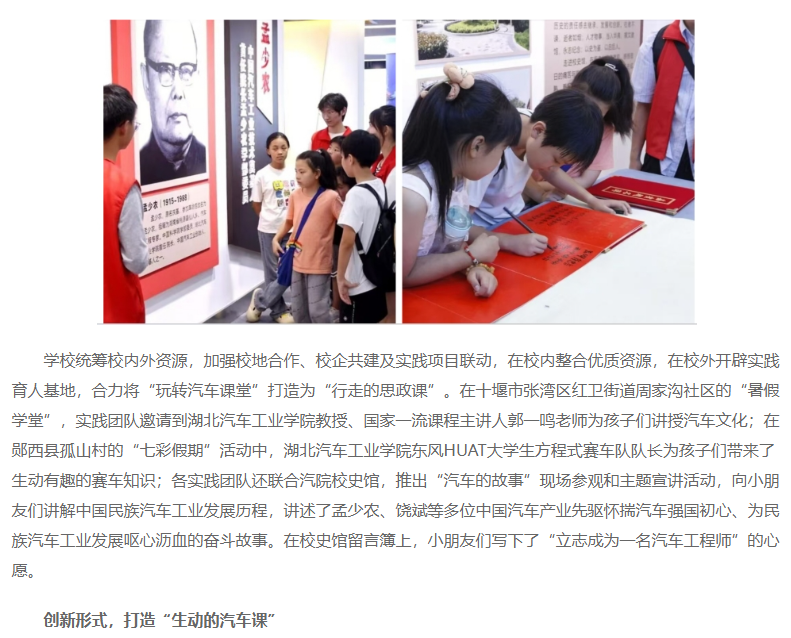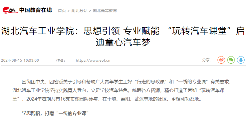 【中国教育在线】湖北汽车工业学院:思想引领 专业赋能 “玩转汽车课堂”启迪童心汽车梦