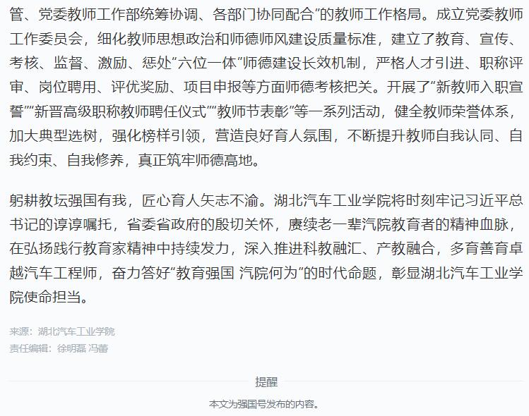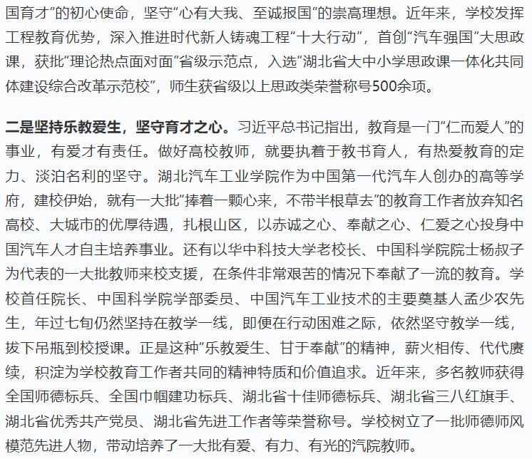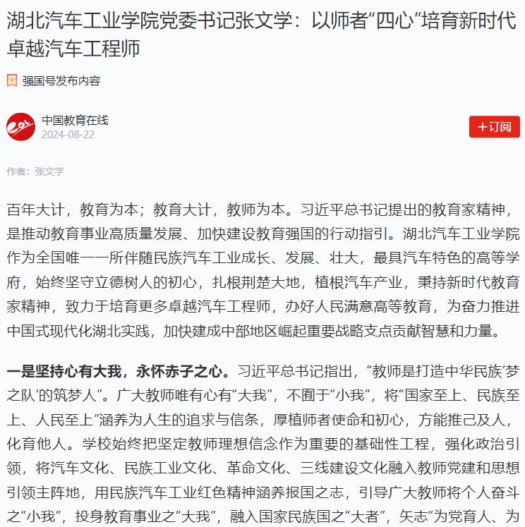 【中国教育在线强国号】湖北汽车工业学院党委书记张文学:以师者“四心”培育新时代卓越汽车工程师