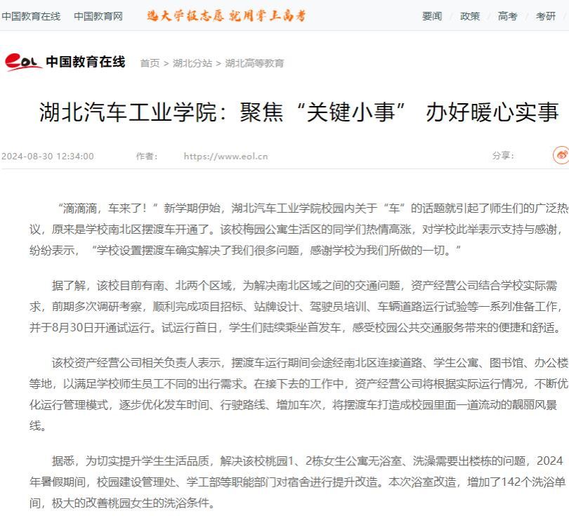 【中国教育在线】湖北汽车工业学院:聚焦“关键小事” 办好暖心实事
