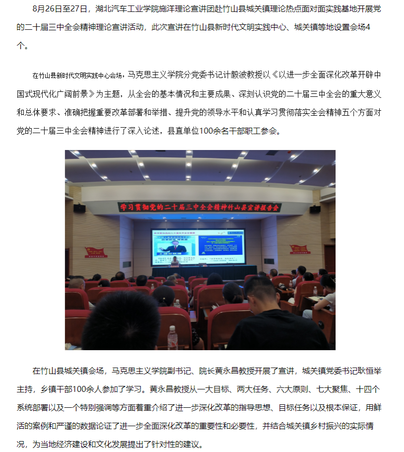 【湖北理论信息网】创新形式、更接地气——湖北汽车工业学院施洋理论宣讲团开展党的二十届三中全会精神理论宣讲活动