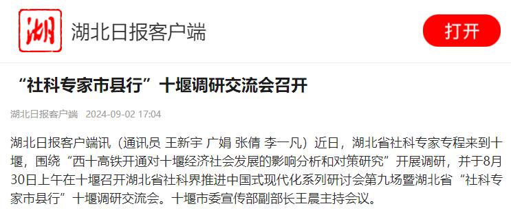 【湖北日报】“社科专家市县行”十堰调研交流会召开