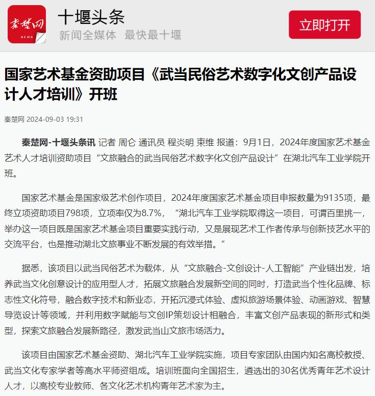 【十堰头条】国家艺术基金资助项目《武当民俗艺术数字化文创产品设计人才培训》开班