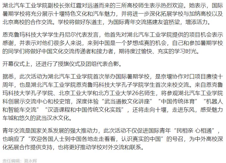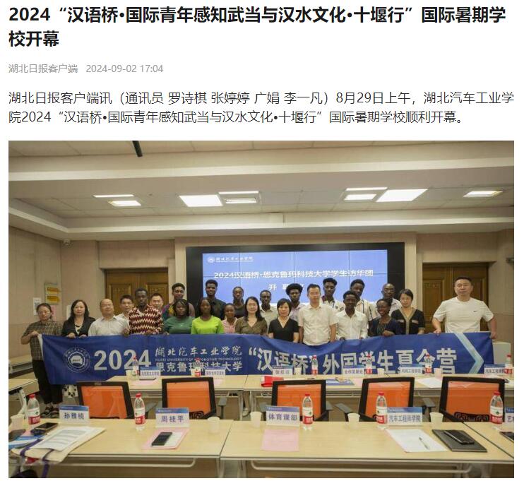【湖北日报】2024“汉语桥•国际青年感知武当与汉水文化•十堰行”国际暑期学校开幕