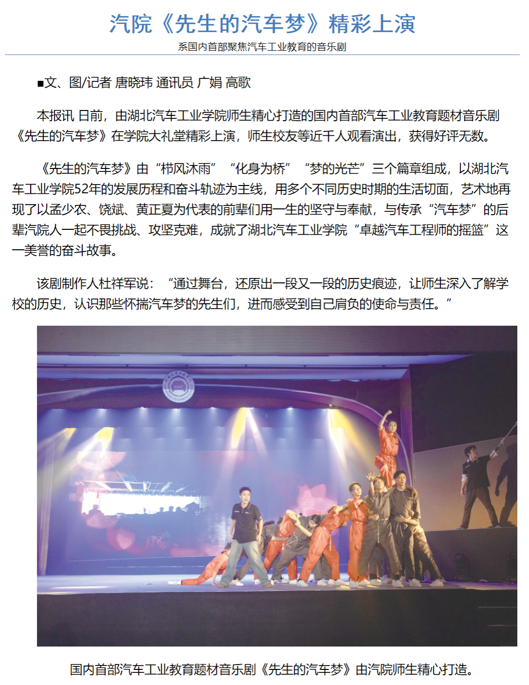 【十堰晚报】汽院《先生的汽车梦》精彩上演系国内首部聚焦汽车工业教育的音乐剧
