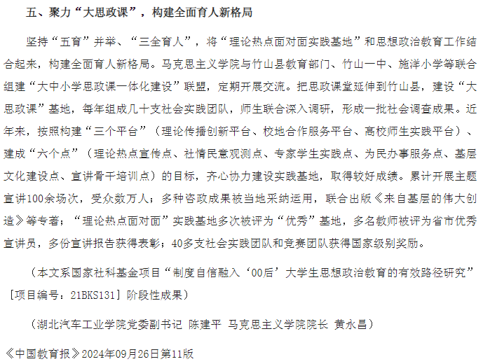 【中国教育报】湖北汽车工业学院马克思主义学院 推动党的创新理论“飞入寻常百姓家”