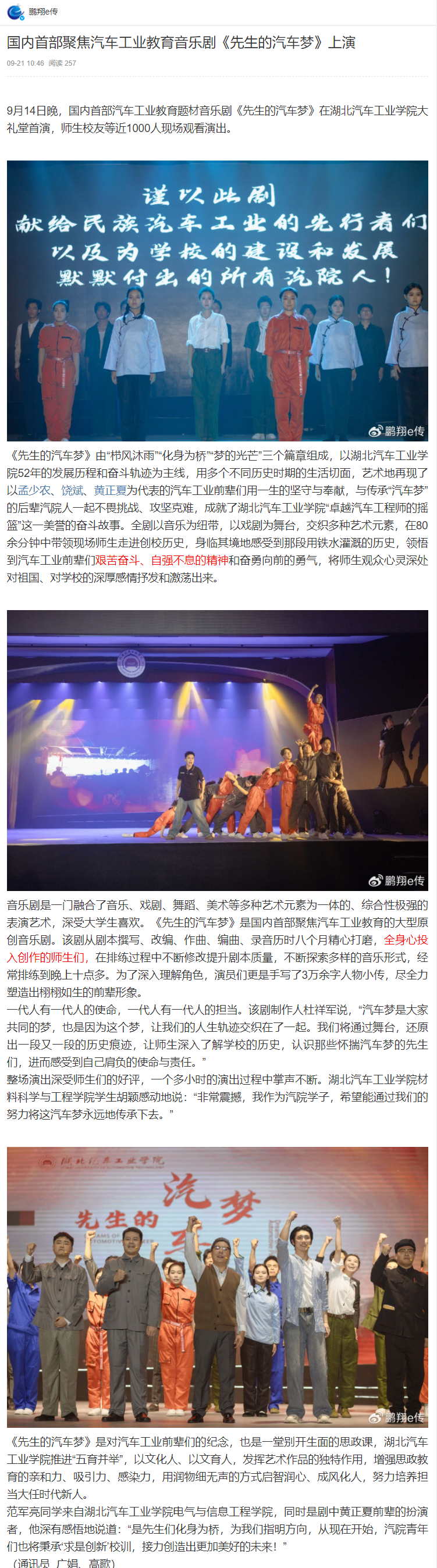 【微博】国内首部聚焦汽车工业教育音乐剧《先生的汽车梦》上演