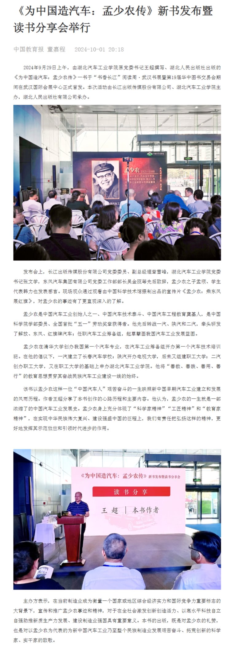 【中国教育报】《为中国造汽车:孟少农传》新书发布暨读书分享会举行