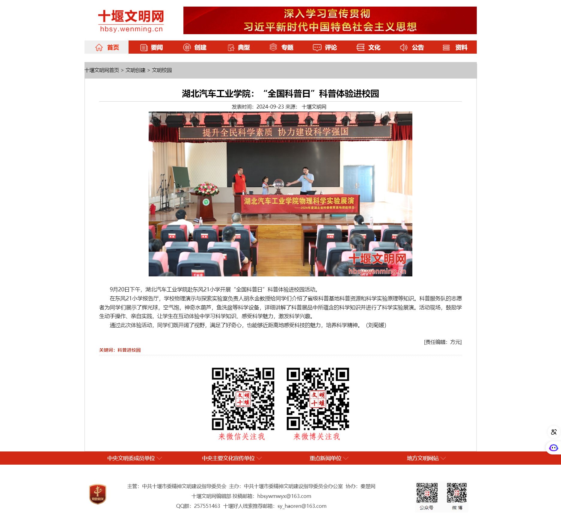 【十堰文明网】湖北汽车工业学院:“全国科普日”科普体验进校园