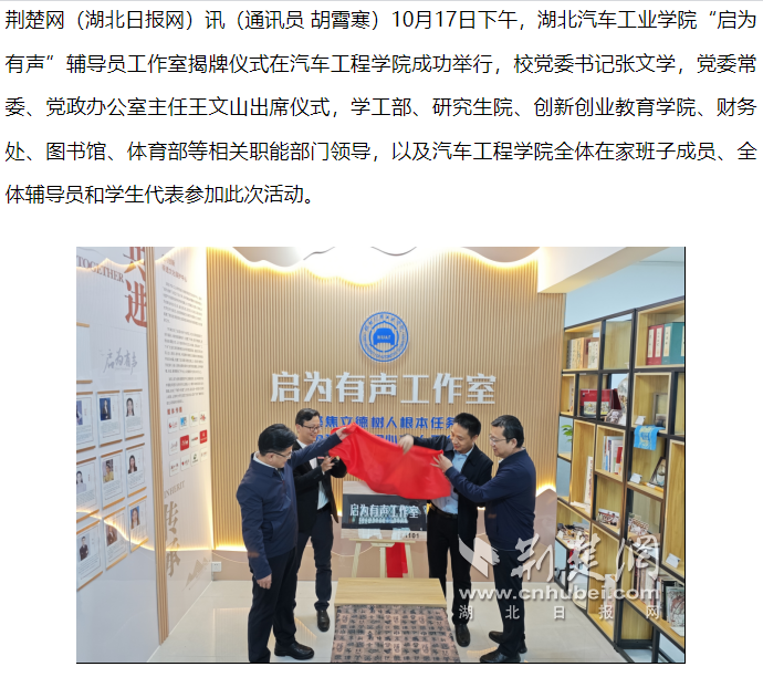 【荆楚网】湖北汽车工业学院“启为有声”辅导员工作室正式揭牌