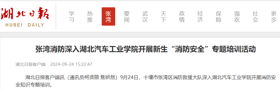 【湖北日报】张湾消防深入湖北汽车工业学院开展新生“消防安全”专题培训活动