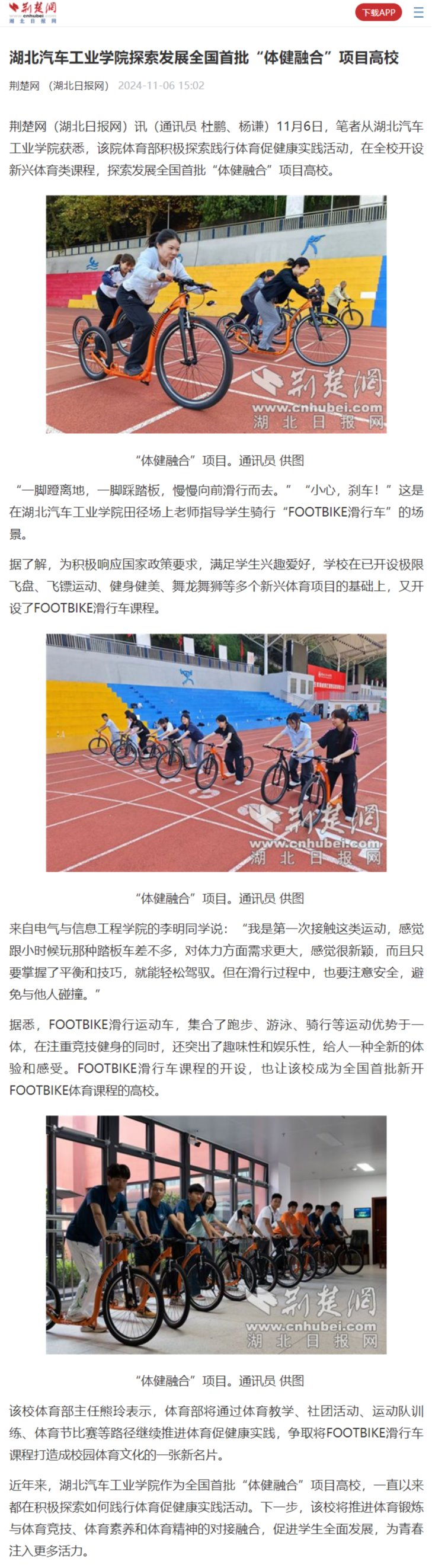 【荆楚网】湖北汽车工业学院探索发展全国首批“体健融合”项目高校