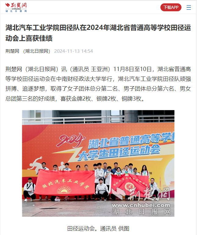 【荆楚网】湖北汽车工业学院田径队在2024年湖北省普通高等学校田径运动会上喜获佳绩