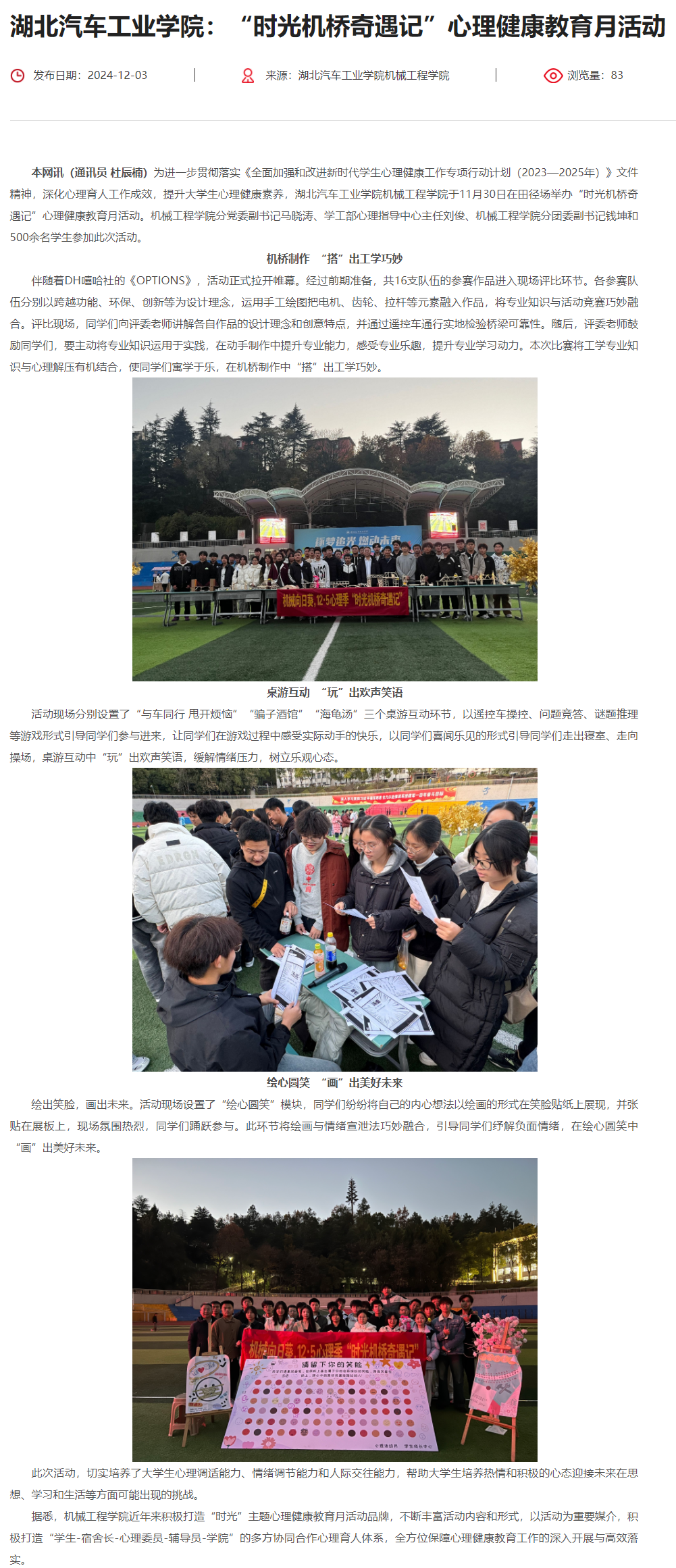 【湖北高校思政网】湖北汽车工业学院:“时光机桥奇遇记”心理健康教育月活动