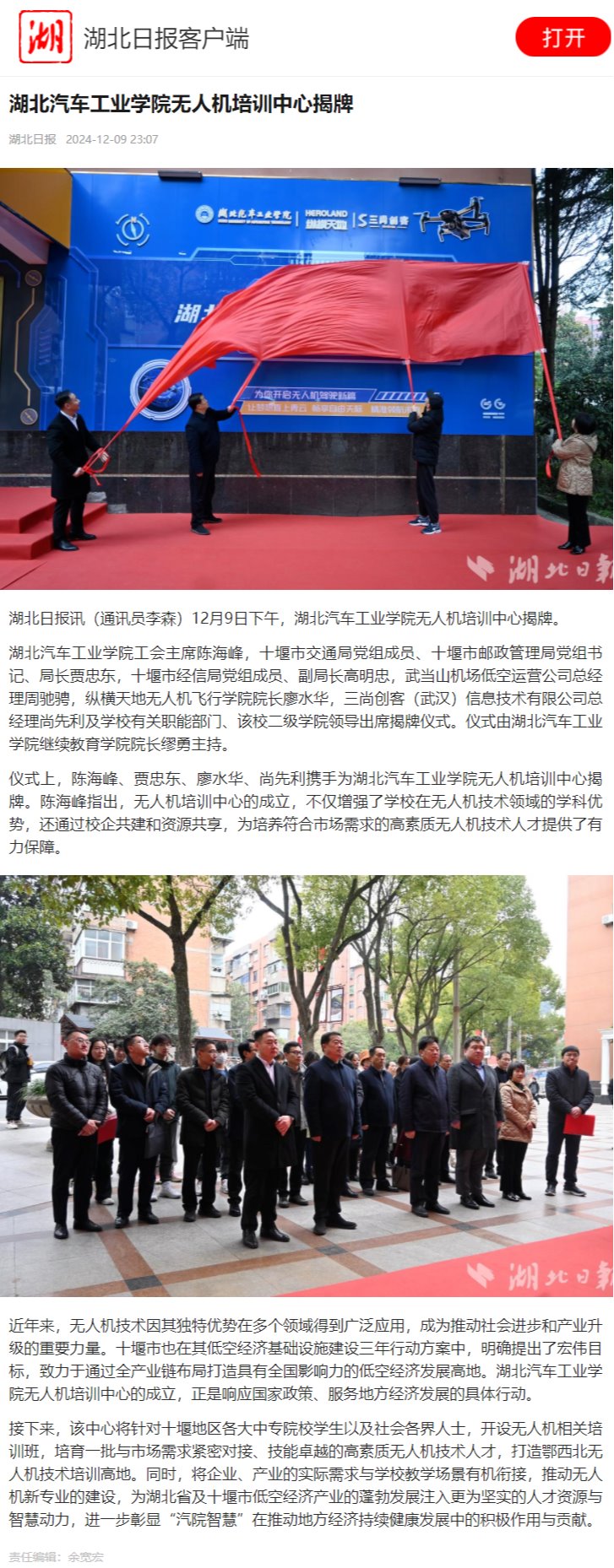 【湖北日报】湖北汽车工业学院无人机培训中心揭牌
