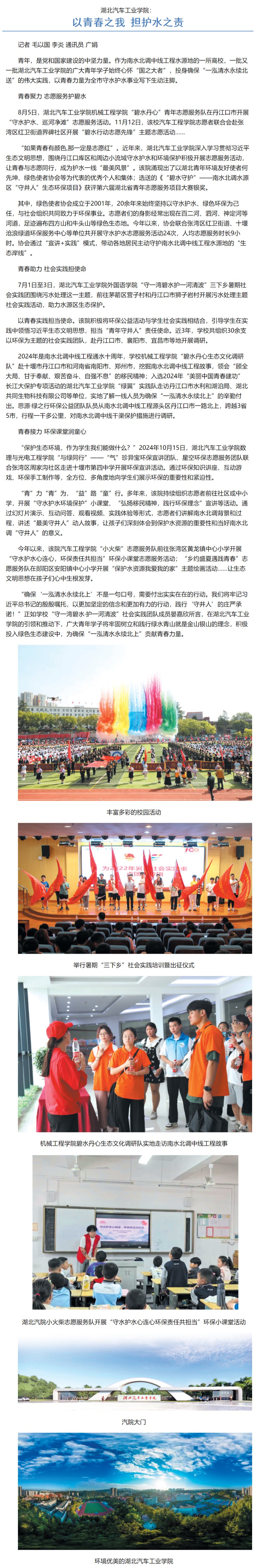【十堰日报】湖北汽车工业学院:以青春之我 担护水之责