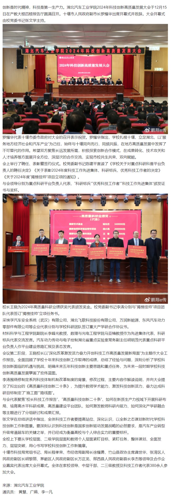 【新浪】湖北汽车工业学院2024年科技创新高质量发展大会圆满召开