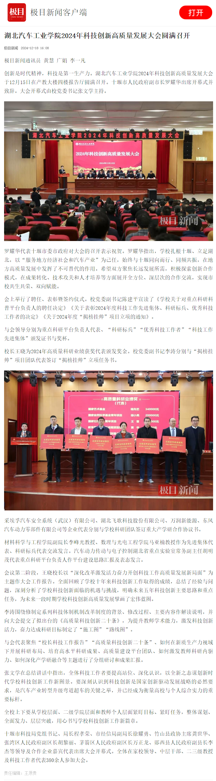 【极目新闻】湖北汽车工业学院2024年科技创新高质量发展大会圆满召开