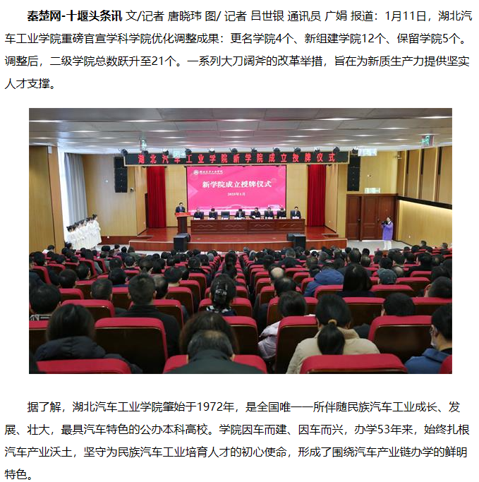 【秦楚网】凸显汽车学科特色 湖北汽车工业学院组建12个新学院