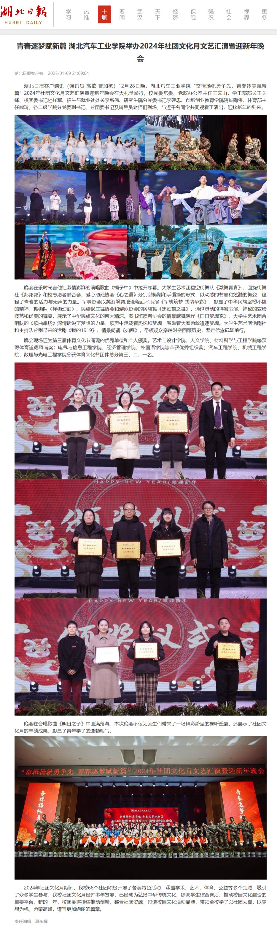 【湖北日报】青春逐梦赋新篇 湖北汽车工业学院举办2024年社团文化月文艺汇演暨迎新年晚会