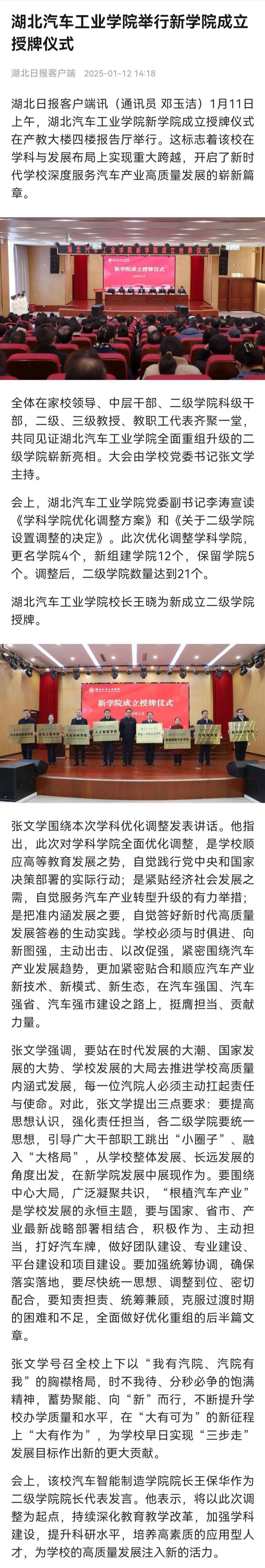 【湖北日报】湖北汽车工业学院举行新学院成立授牌仪式