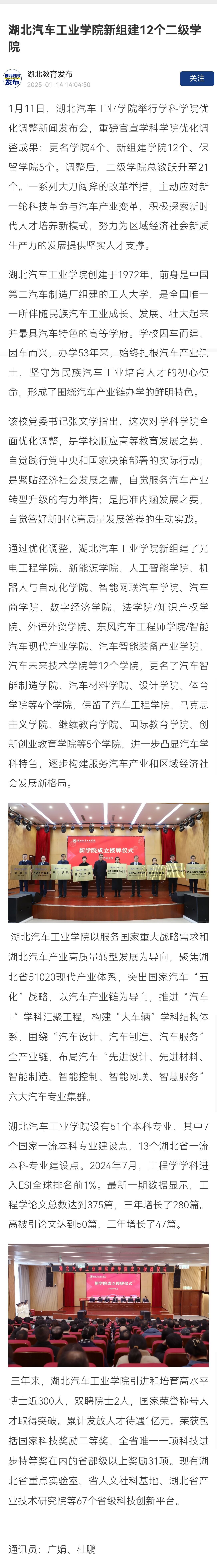【湖北教育发布】湖北汽车工业学院新组建12个二级学院