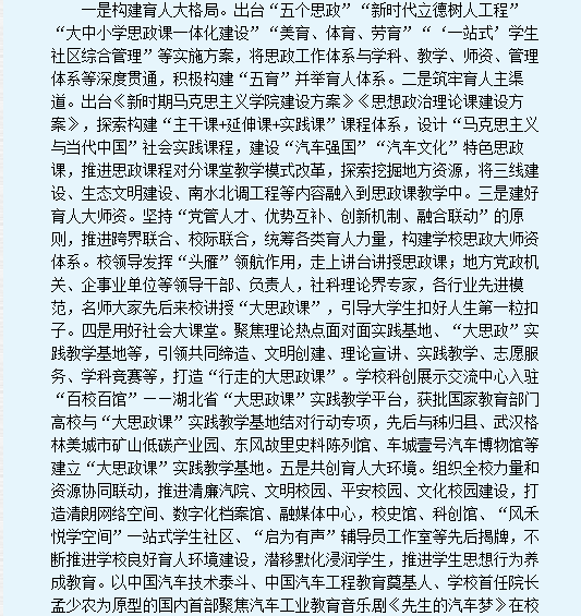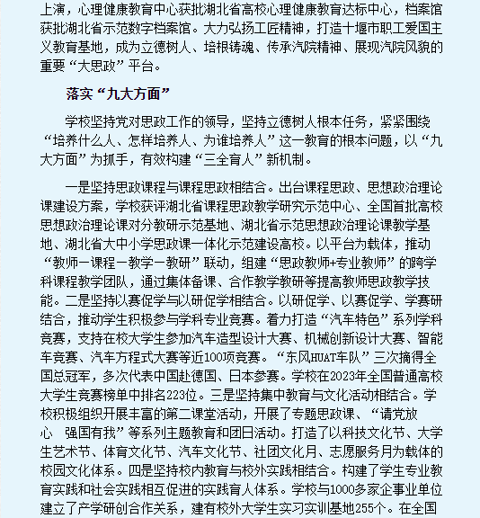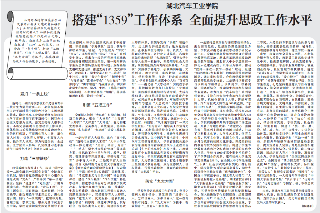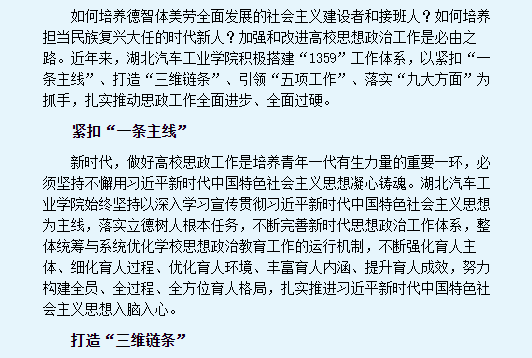 【中国教育报】湖北汽车工业学院:搭建“1359”工作体系 全面提升思政工作水平