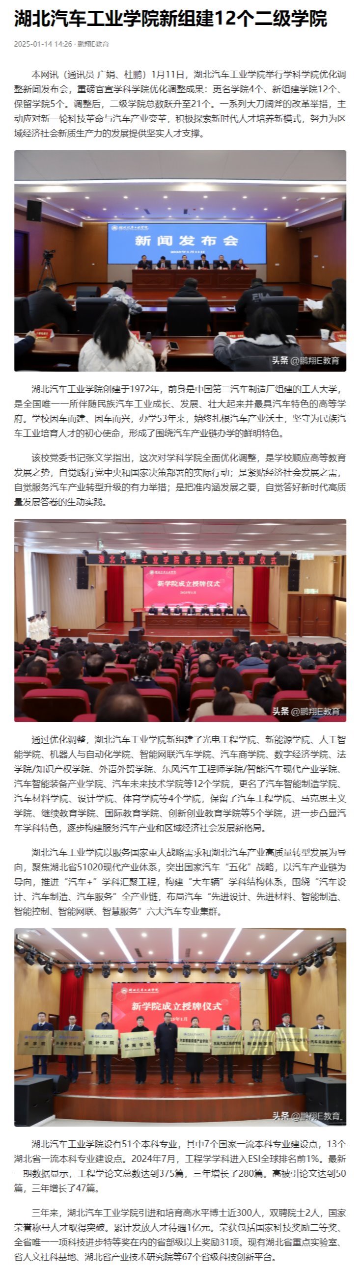 【今日头条】湖北汽车工业学院新组建12个二级学院