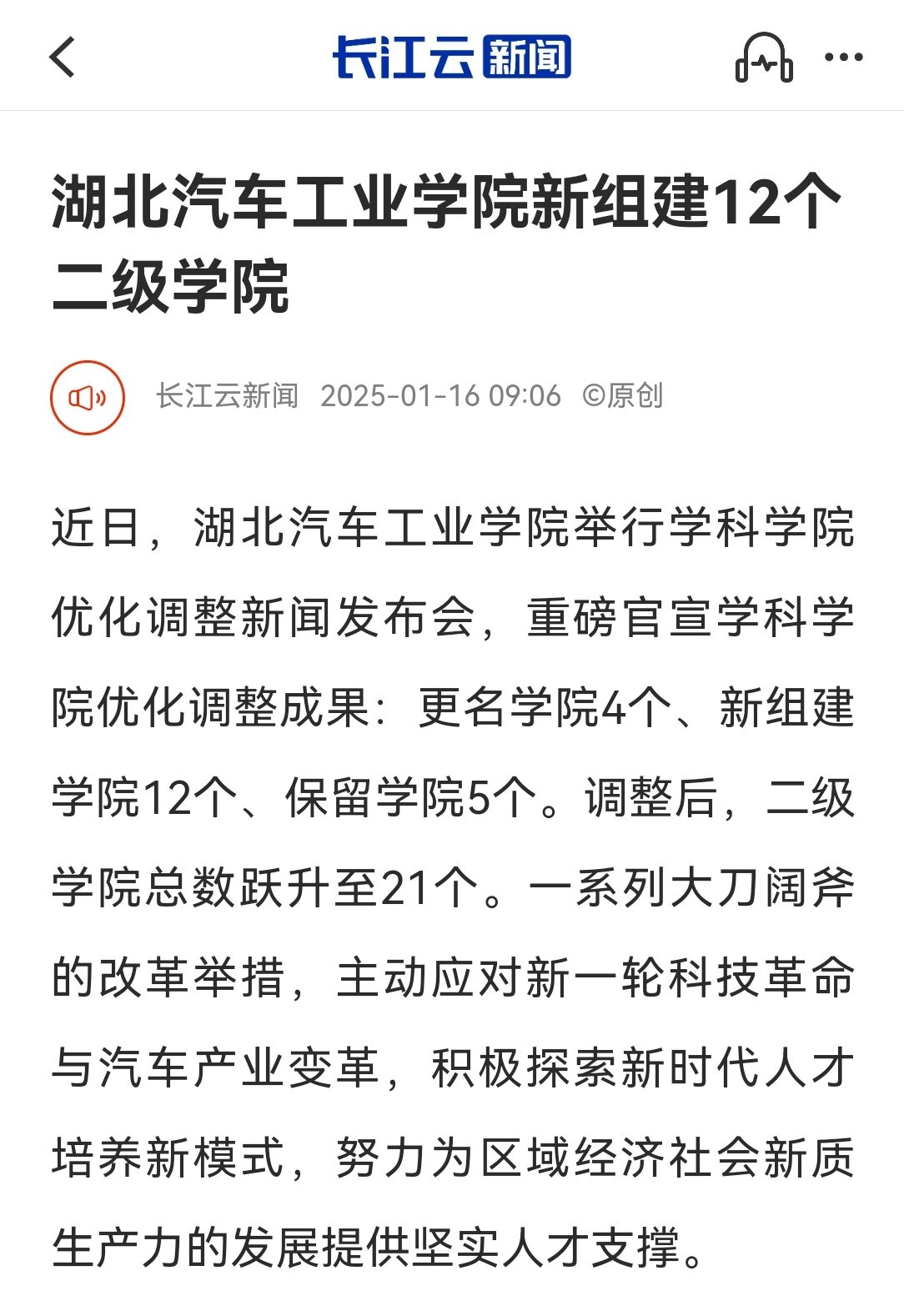 【长江云】湖北汽车工业学院新组建12个二级学院