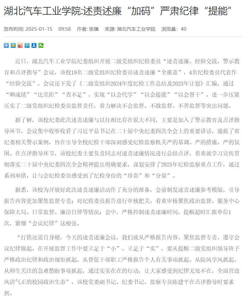 【湖北教育新闻】湖北汽车工业学院:述责述廉“加码”严肃纪律“提能”