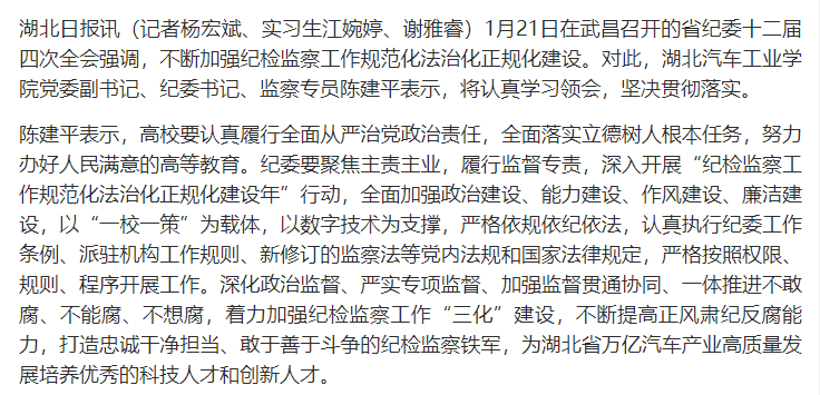 【湖北日报】省纪委全会精神话落实丨湖北汽车工业学院纪委:加强高校纪委规范化建设