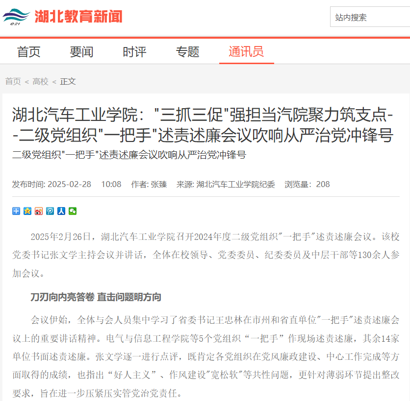 【湖北教育新闻】湖北汽车工业学院:"三抓三促"强担当汽院聚力筑支点--二级党组织"一把手"述责述廉会议吹响从严治党冲锋号