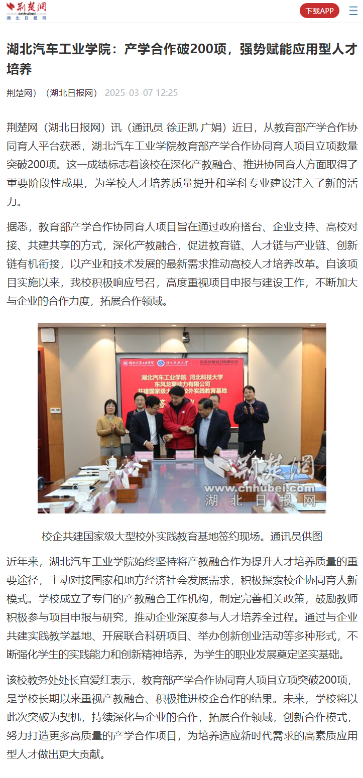 【荆楚网】湖北汽车工业学院:产学合作破200项,强势赋能应用型人才培养