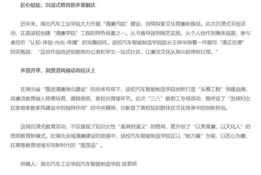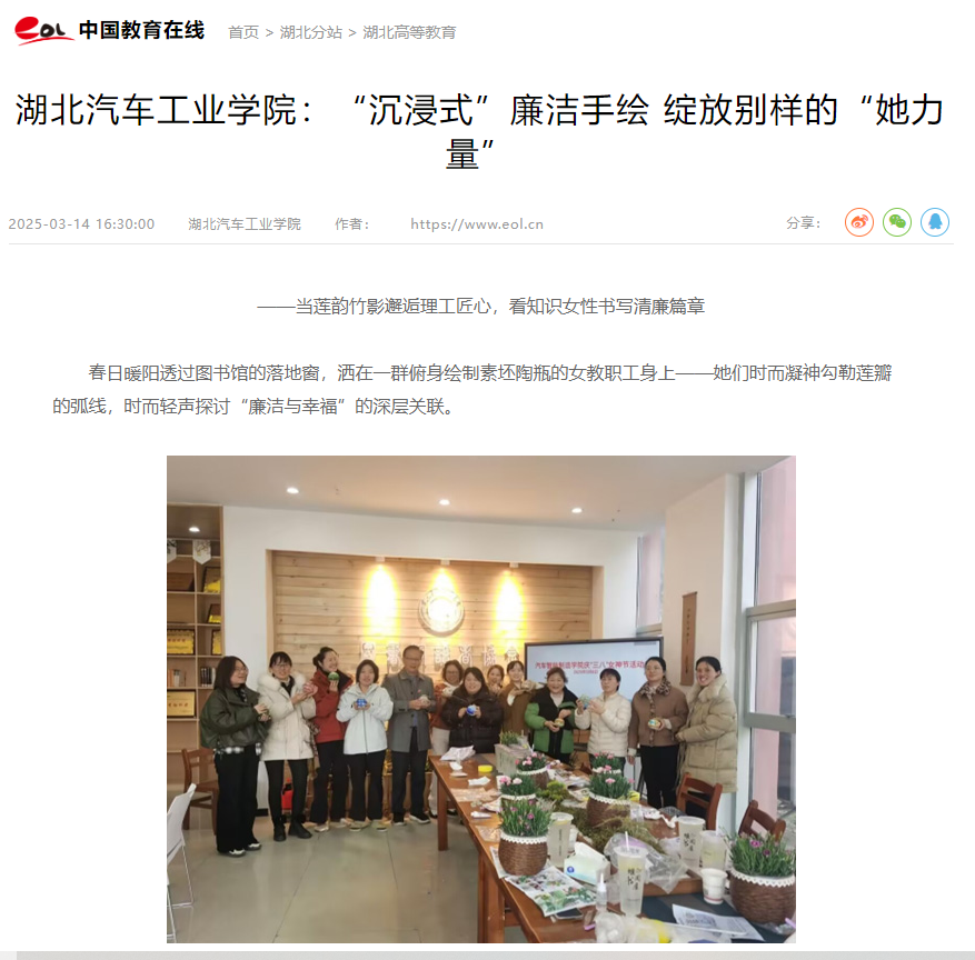 【中国教育在线】湖北汽车工业学院:“沉浸式”廉洁手绘 绽放别样的“她力量”