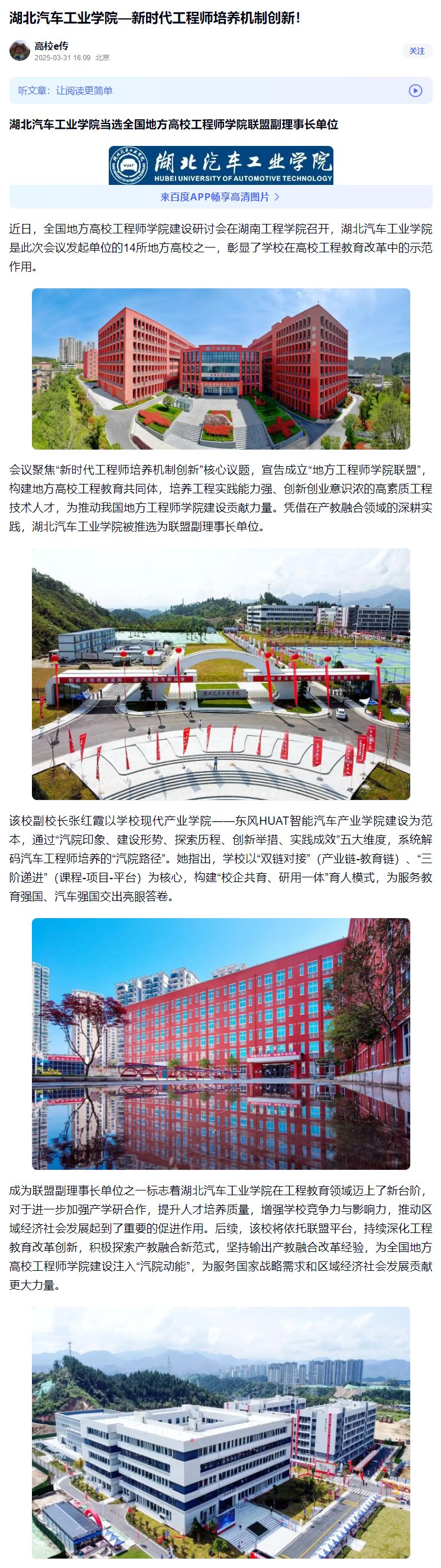 【百度】湖北汽车工业学院—新时代工程师培养机制创新!