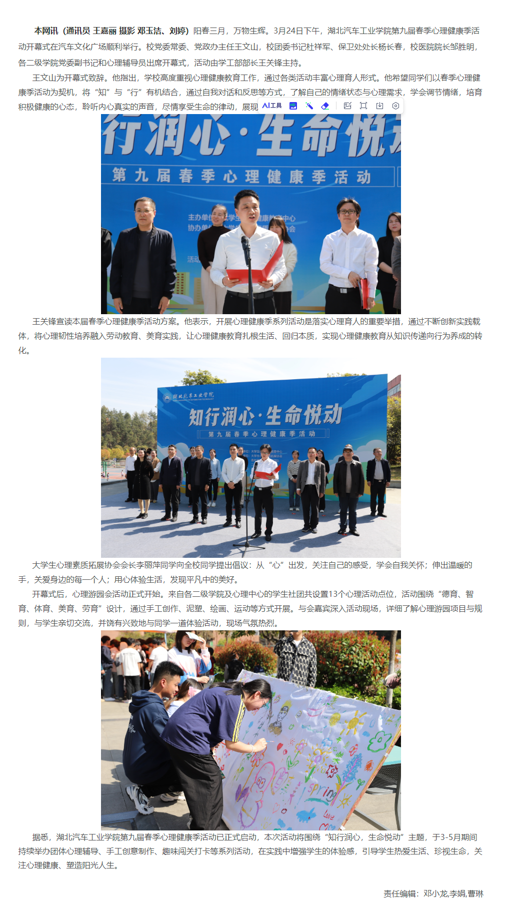 【湖北高校思政网】湖北汽车工业学院:第九届“知行润心,生命悦动”春季心理健康季活动开幕