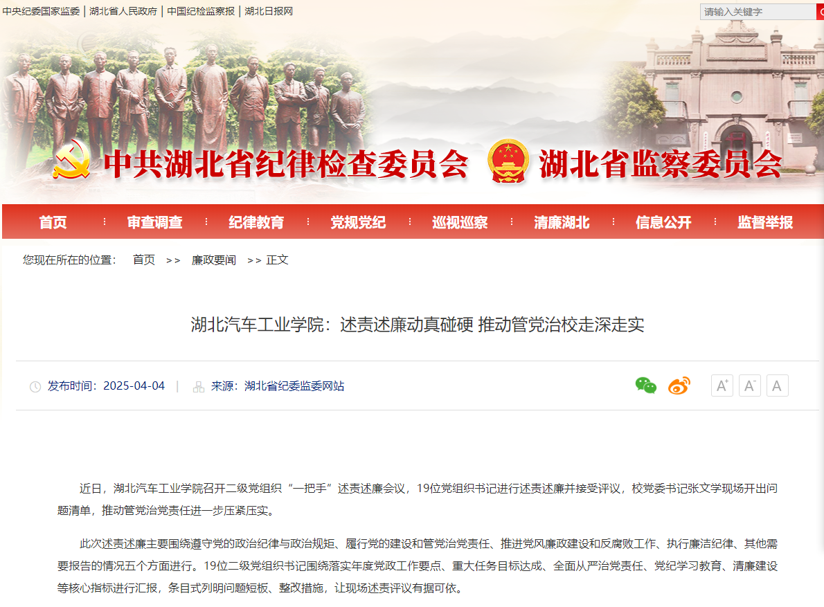 【湖北省纪委监委】湖北汽车工业学院:述责述廉动真碰硬 推动管党治校走深走实