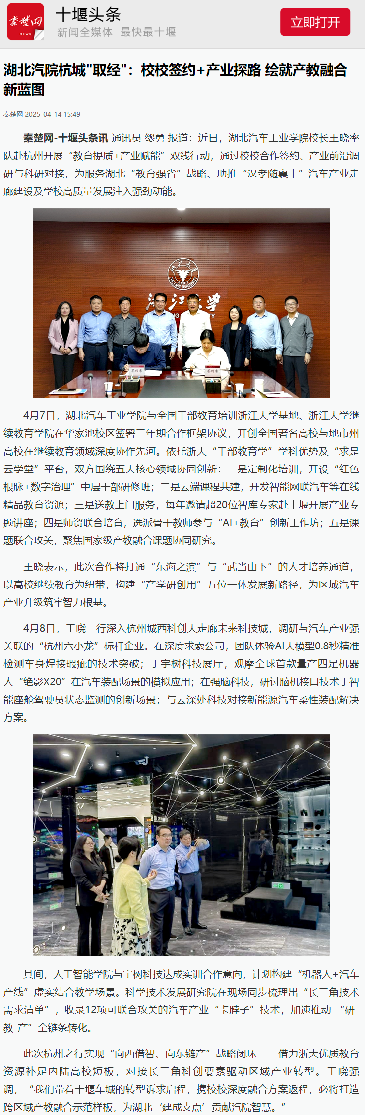 【秦楚网】湖北汽院杭城"取经":校校签约+产业探路 绘就产教融合新蓝图