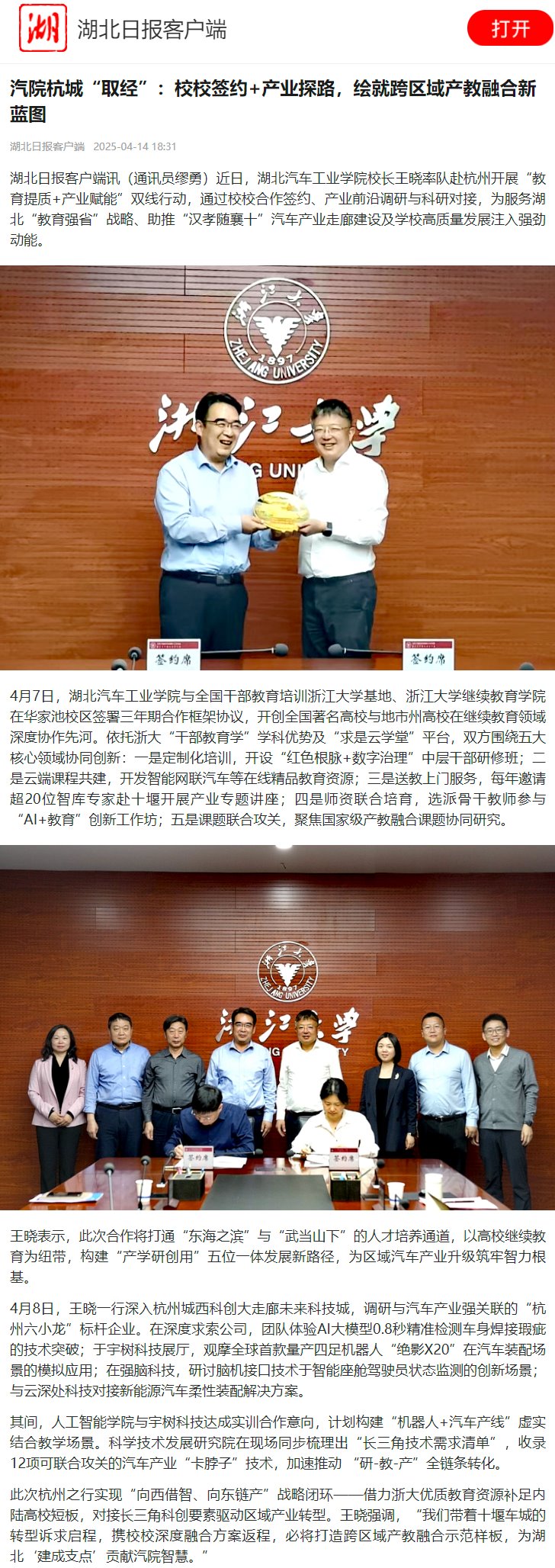【湖北日报】汽院杭城“取经”:校校签约+产业探路,绘就跨区域产教融合新蓝图
