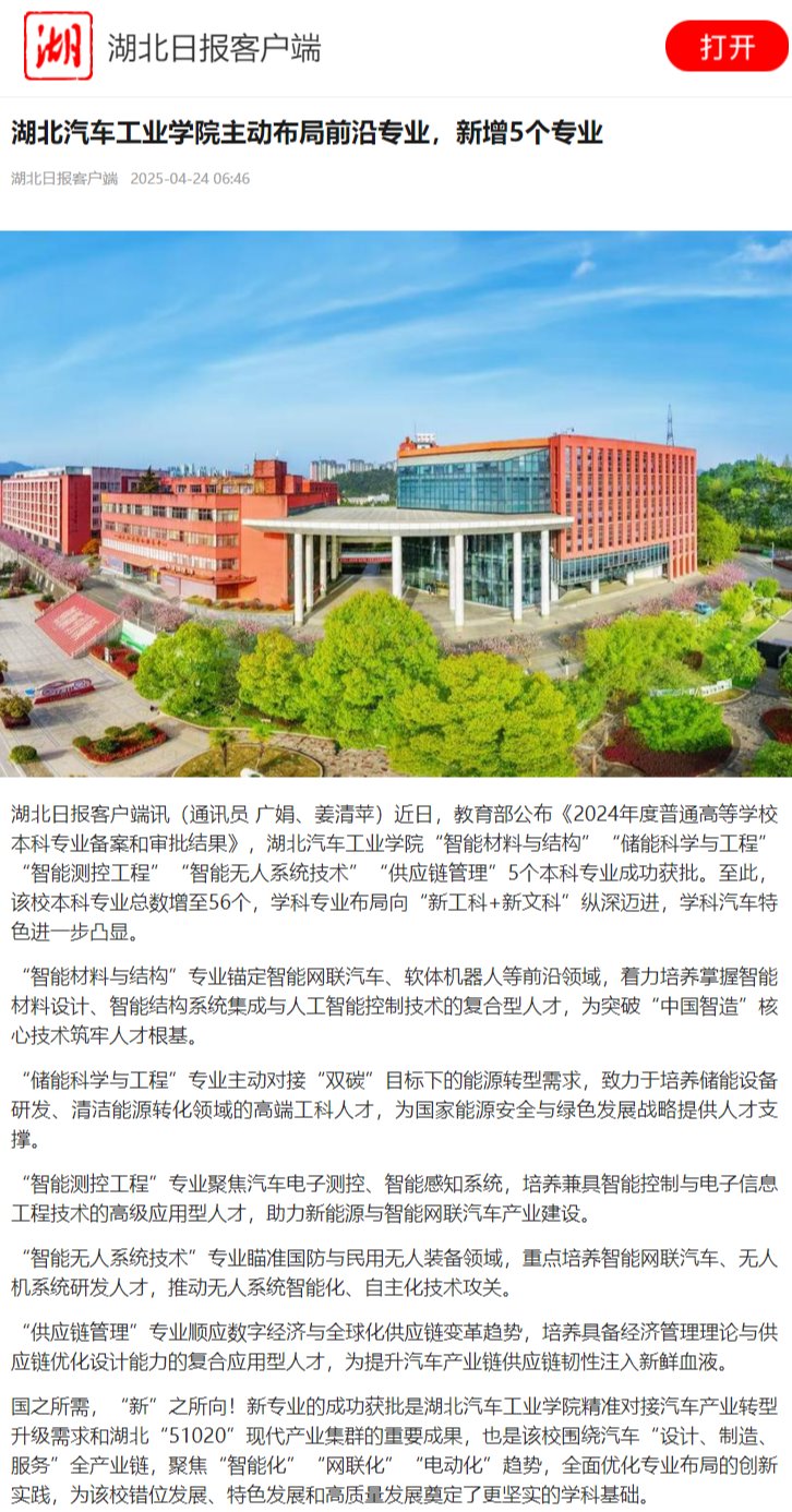 【湖北日报】湖北汽车工业学院主动布局前沿专业,新增5个专业